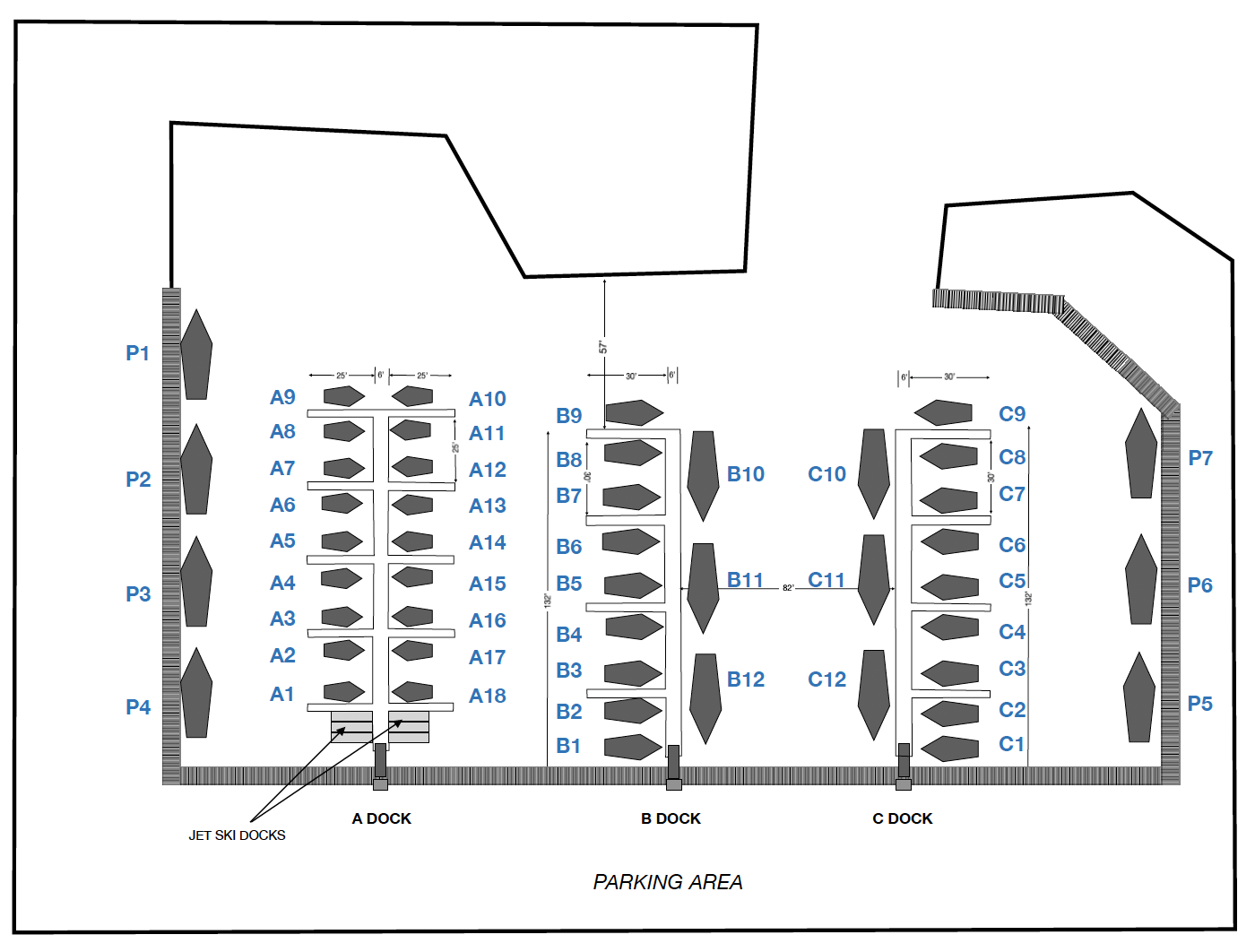 The 2026 season will see brand new docks and restroom facilities with showers for marina customers. The Marina will offer 42 floating dock slips that can accommodate smaller to larger sized vessels, 7 stationary dock slips and 6 pwc slips in our protected basin. All slips will have access to power and water.